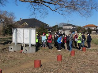鹿島郡家跡の説明板の前で話を聞く |