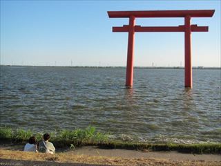 | 坂戸神社を過ぎて | 休憩地点の豊郷公民館 | 北浦湖畔を歩く | 一之鳥居にて小休止 |